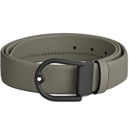 Кожаный ремень 35 мм из кожи серого цвета, пряжка в форме подковы от магазина премиальных ручек Premium Pens в Пушкино.